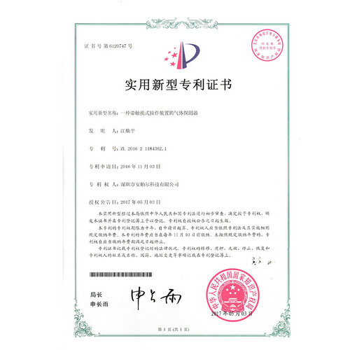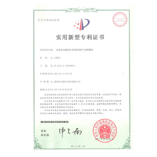 一種帶音視頻監控系統裝置的氣體探測器專利證書