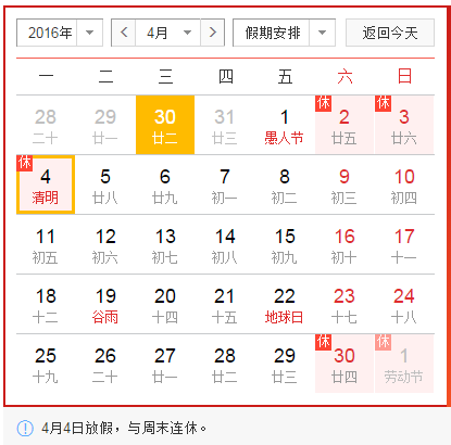 清明節即將來臨,根據國務院2016年清明節放假通知精神,結合我司實際情況,作出以下放假安排: