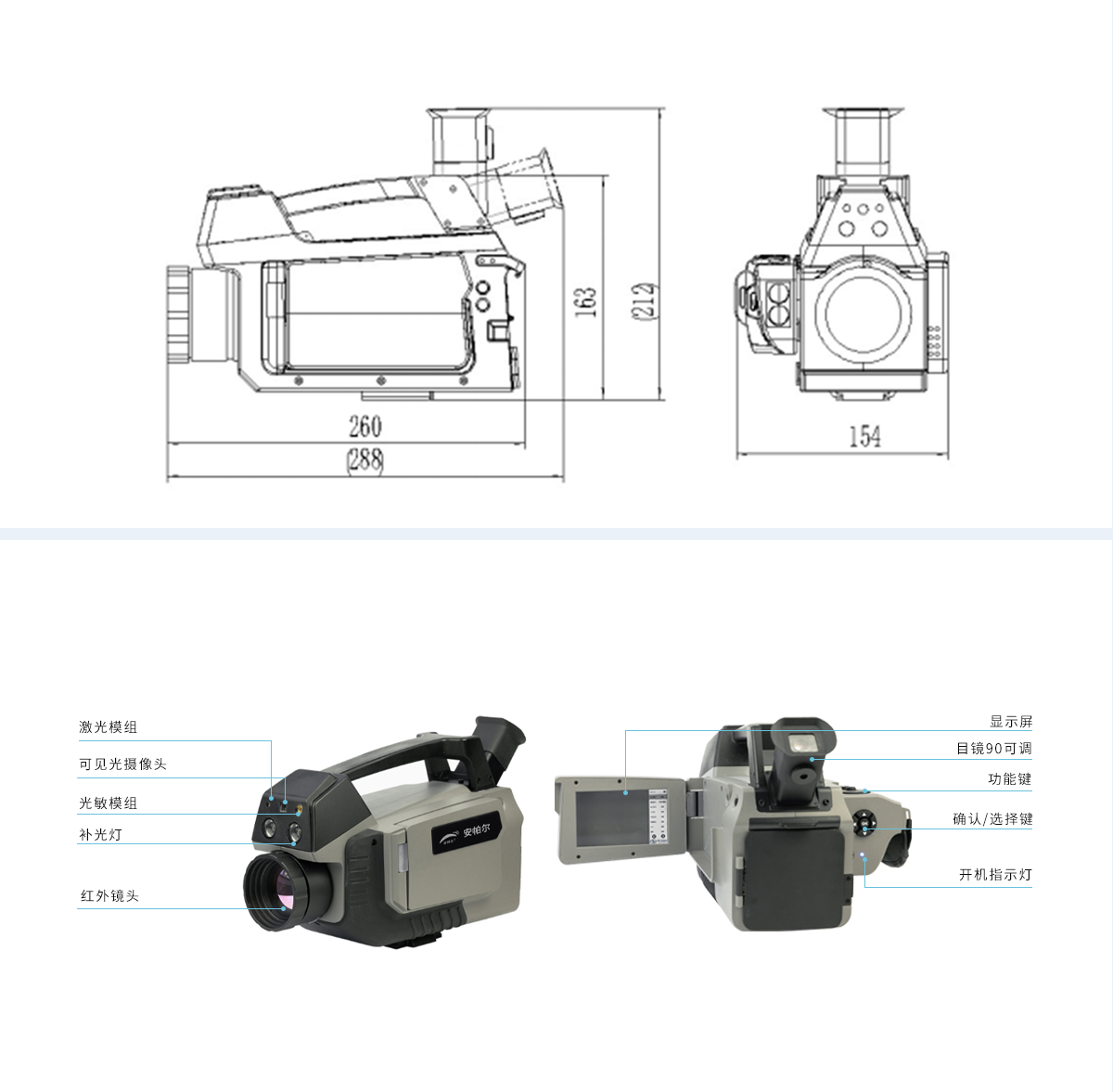 ☆ 液晶顯示屏與內置可見光相機:提供用戶友好的操作界面和直觀的現場情況反饋;